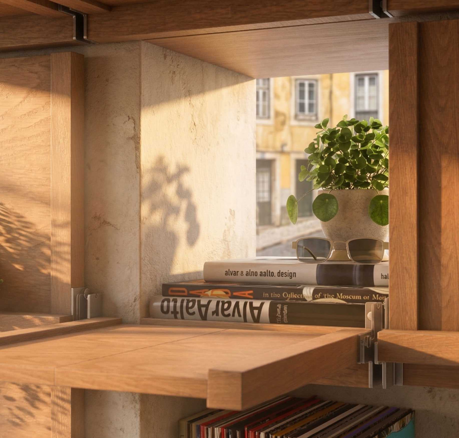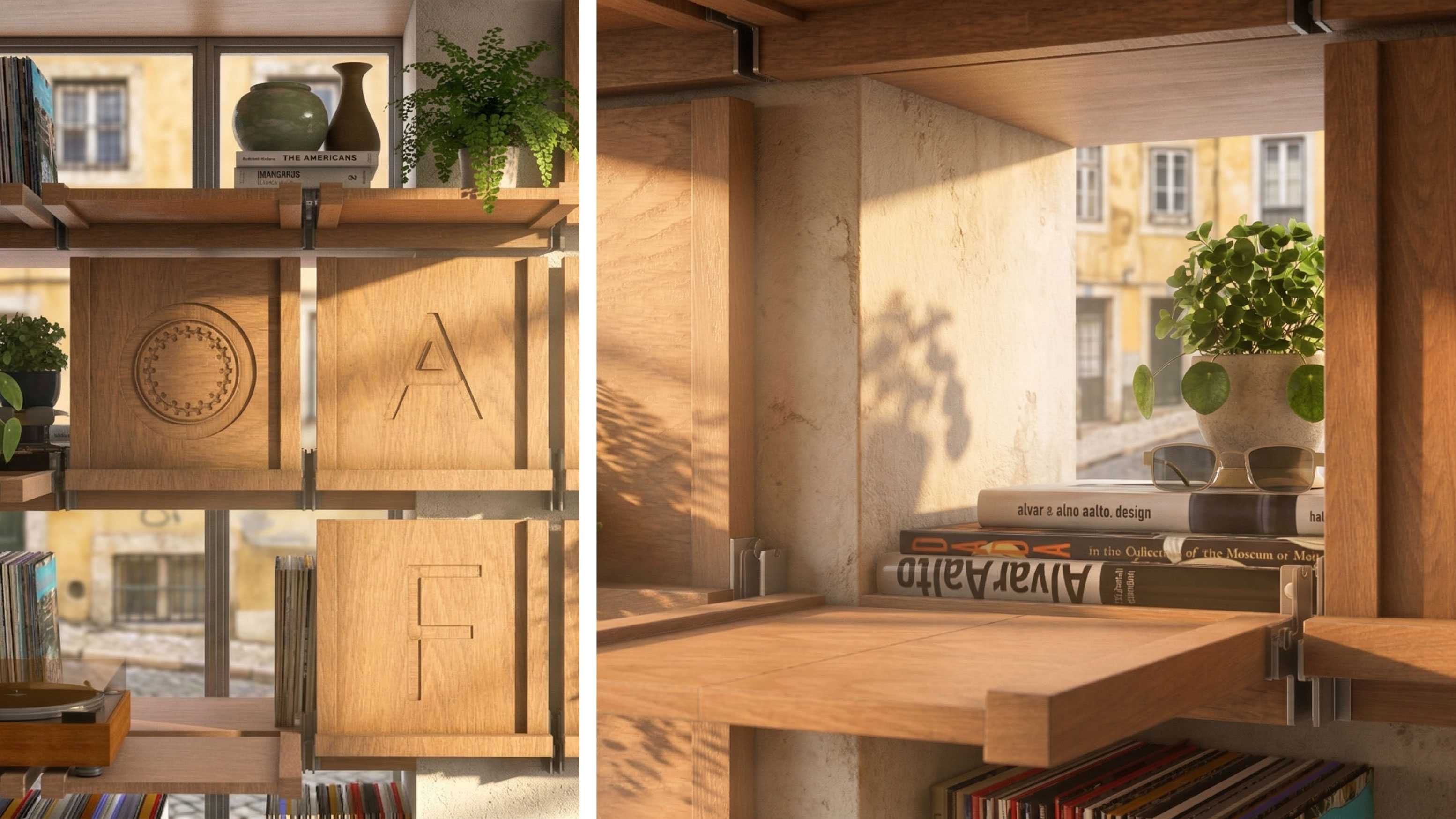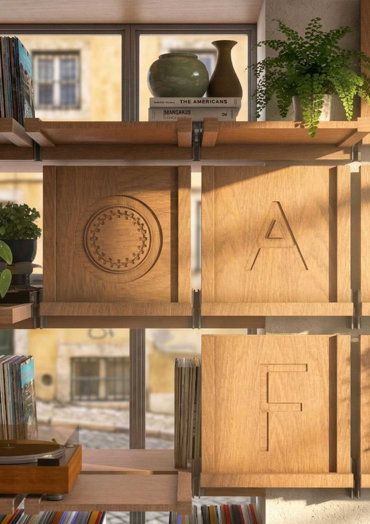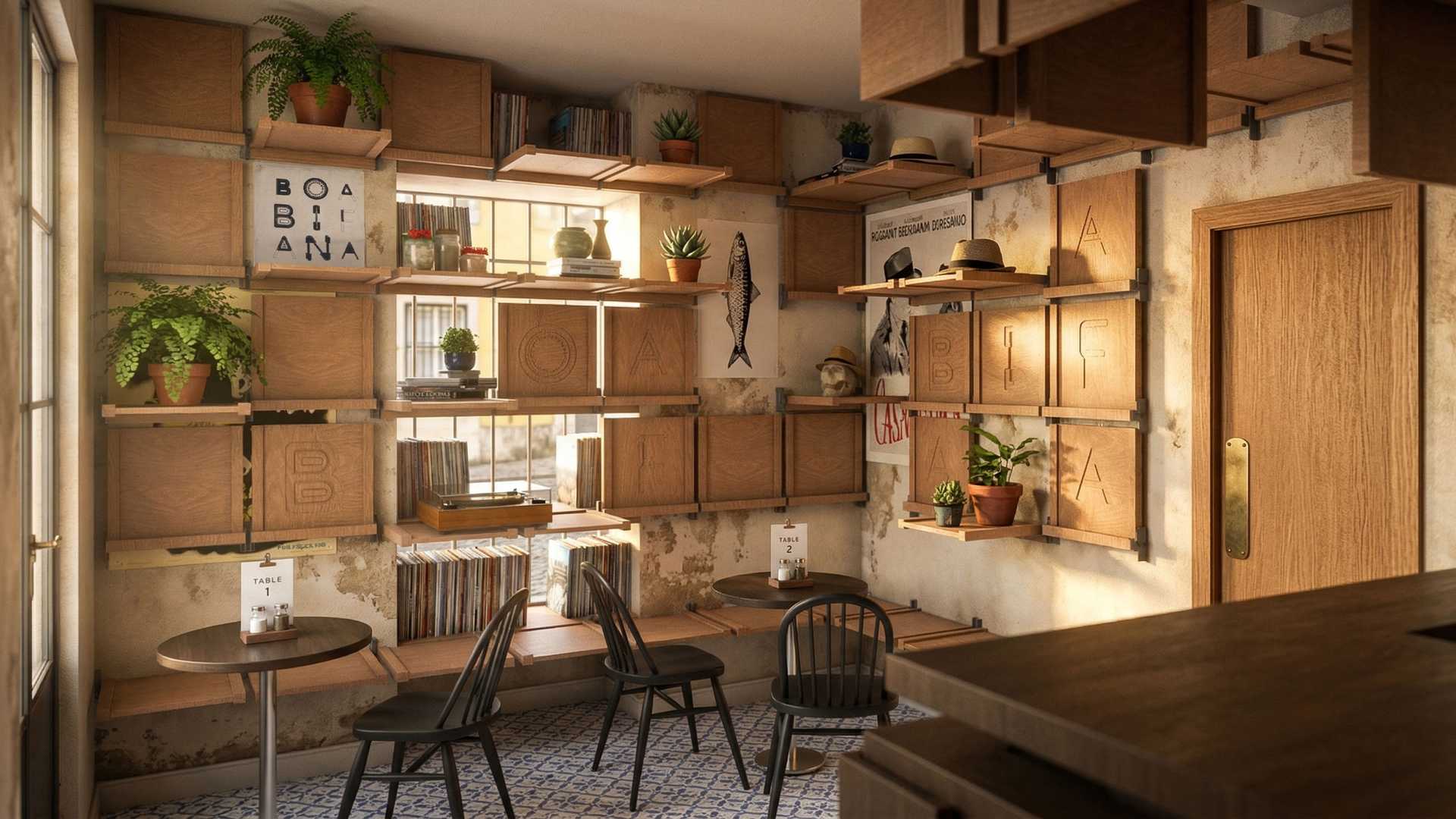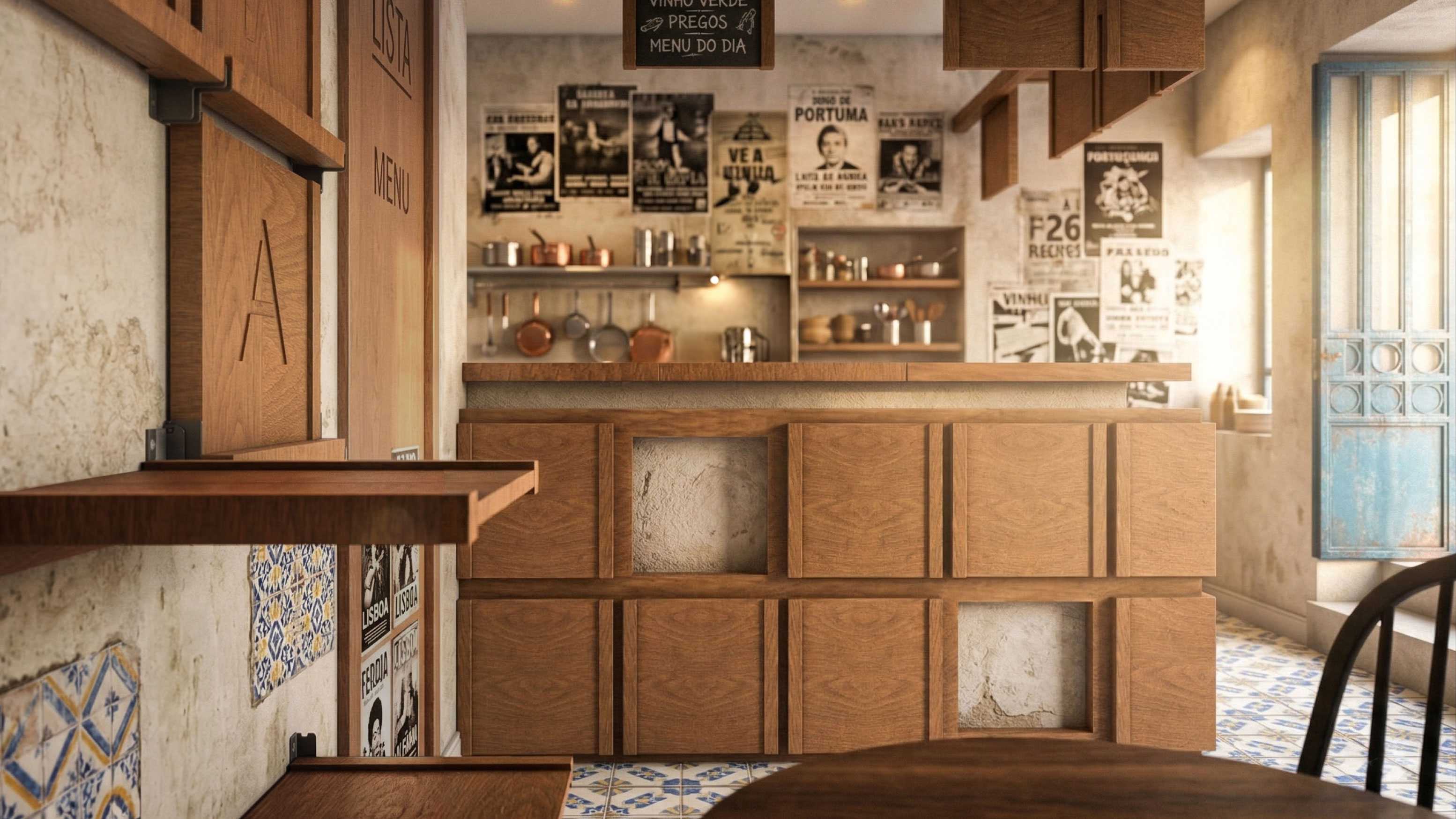 For inspiration we referenced the famous Portuguese ceramic tile and its 3×3 arrangement. This led to the wall furniture layout and our brand language, both integrated into the architectural design.